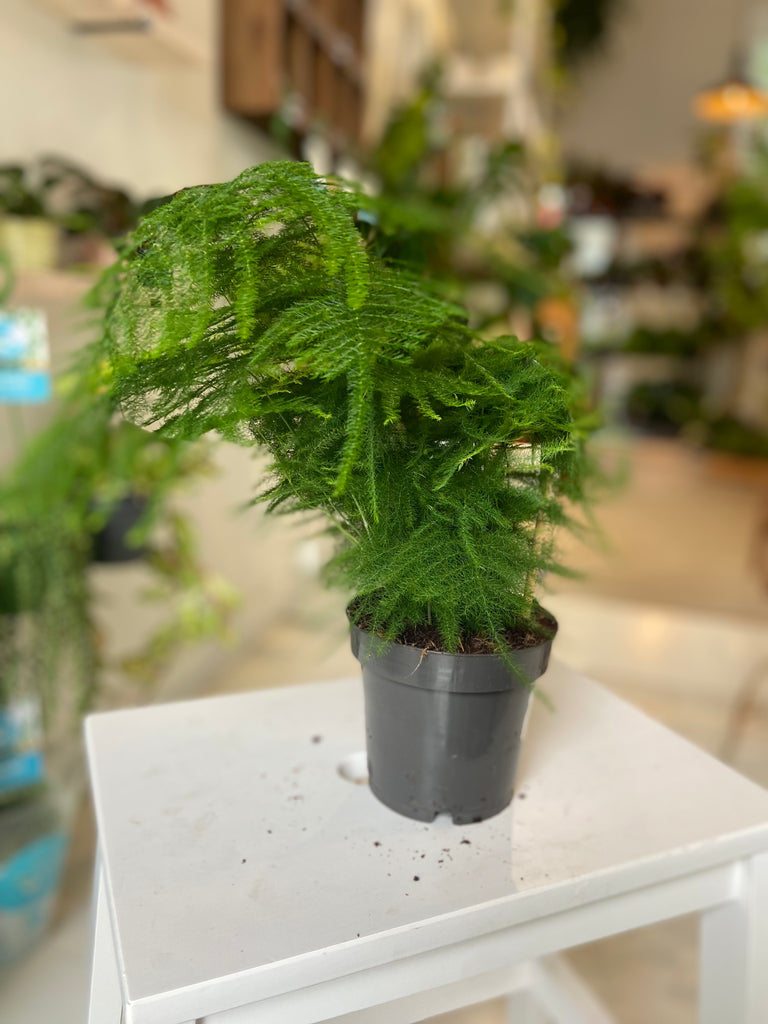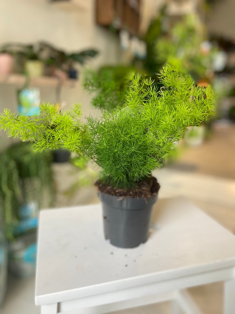 Asparagus ferns are an easy plant with vibrant green feathery leaves and although they are known as ferns, they are in fact part of the Lily family. There are several varieties which all enjoy a bright light and moist but never soggy soil.