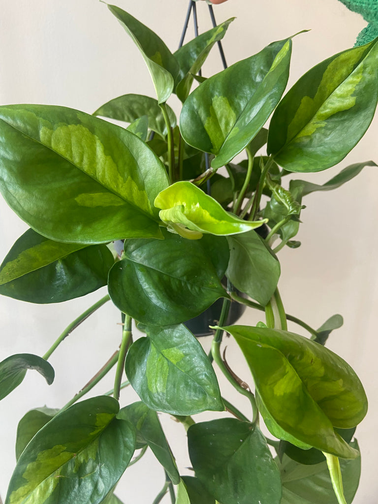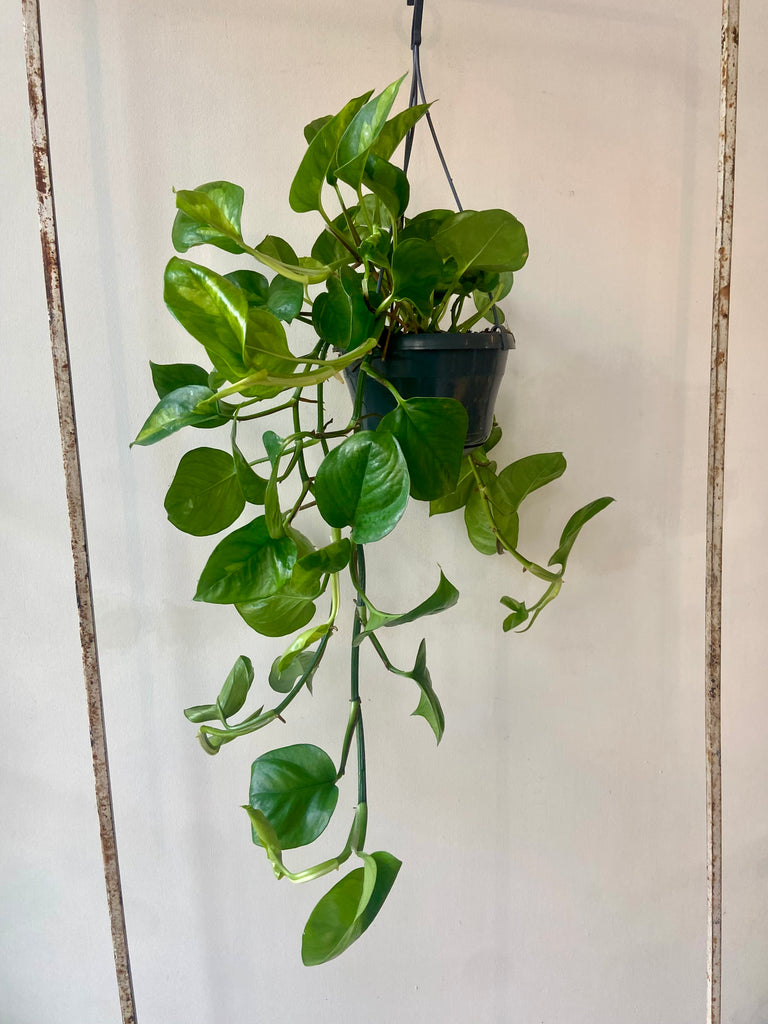 A new variety of Epipremnum or Pothos. Green on green leaves this beautiful trailing or climbing plant will love a bright position and regular watering. However, never allow to sit in water and wait for the top inch of soil to dry out between watering.